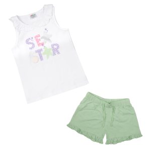 Set 2 pezzi cabotta + pantaloncino bianco/verde stampato