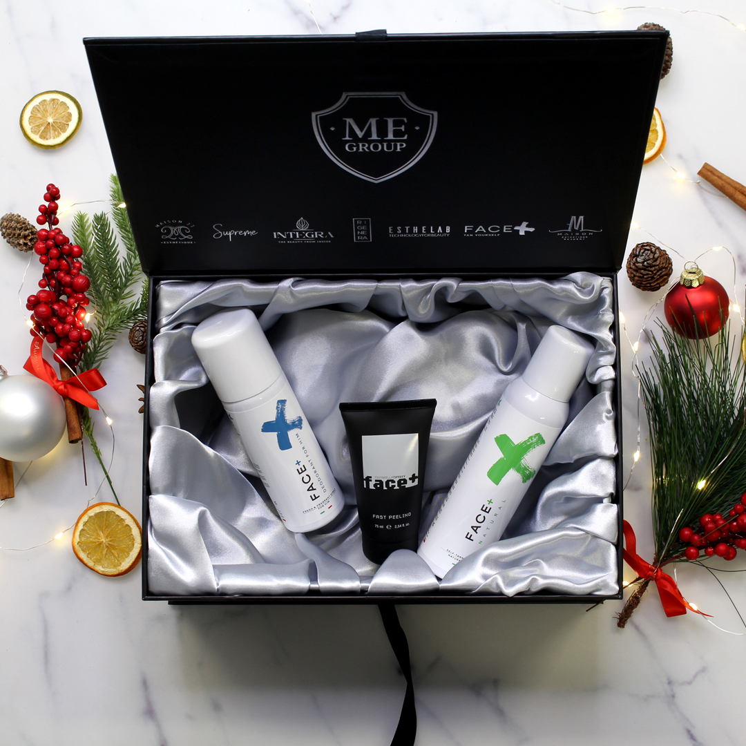 Il kit del benessere natalizio per l’uomo. Include il deodorante Face+ per uomo, il Face+ peeling da utilizzare prima dell’auto abbronzante e Face+ Natural. Il tutto confezionato nella prestigiosa Gift Box di Maison Esthetique.