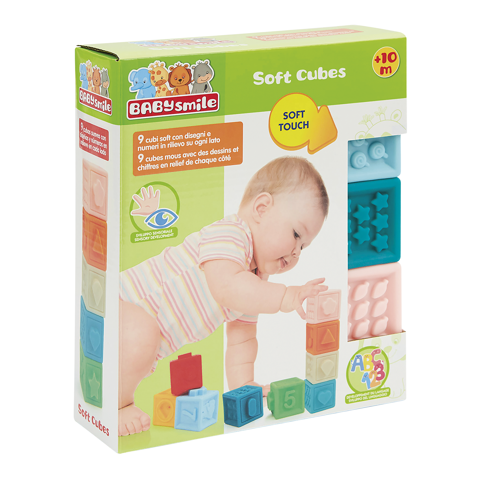 – La confezione include 9 cubi soft che si incastrano tra di loro.