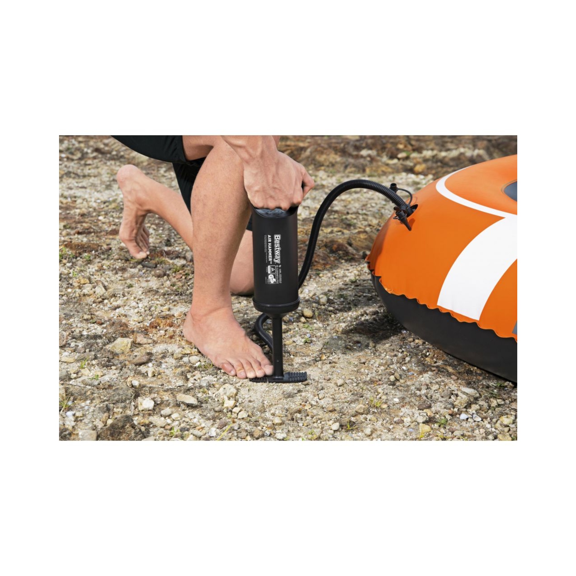 Perfetta per le vacanze estive, la Pompa Manuale Air Hammer™ Bestway® è l’accessorio ideale per gonfiare e sgonfiare rapidamente materassini, canotti, giocattoli e altri gonfiabili.