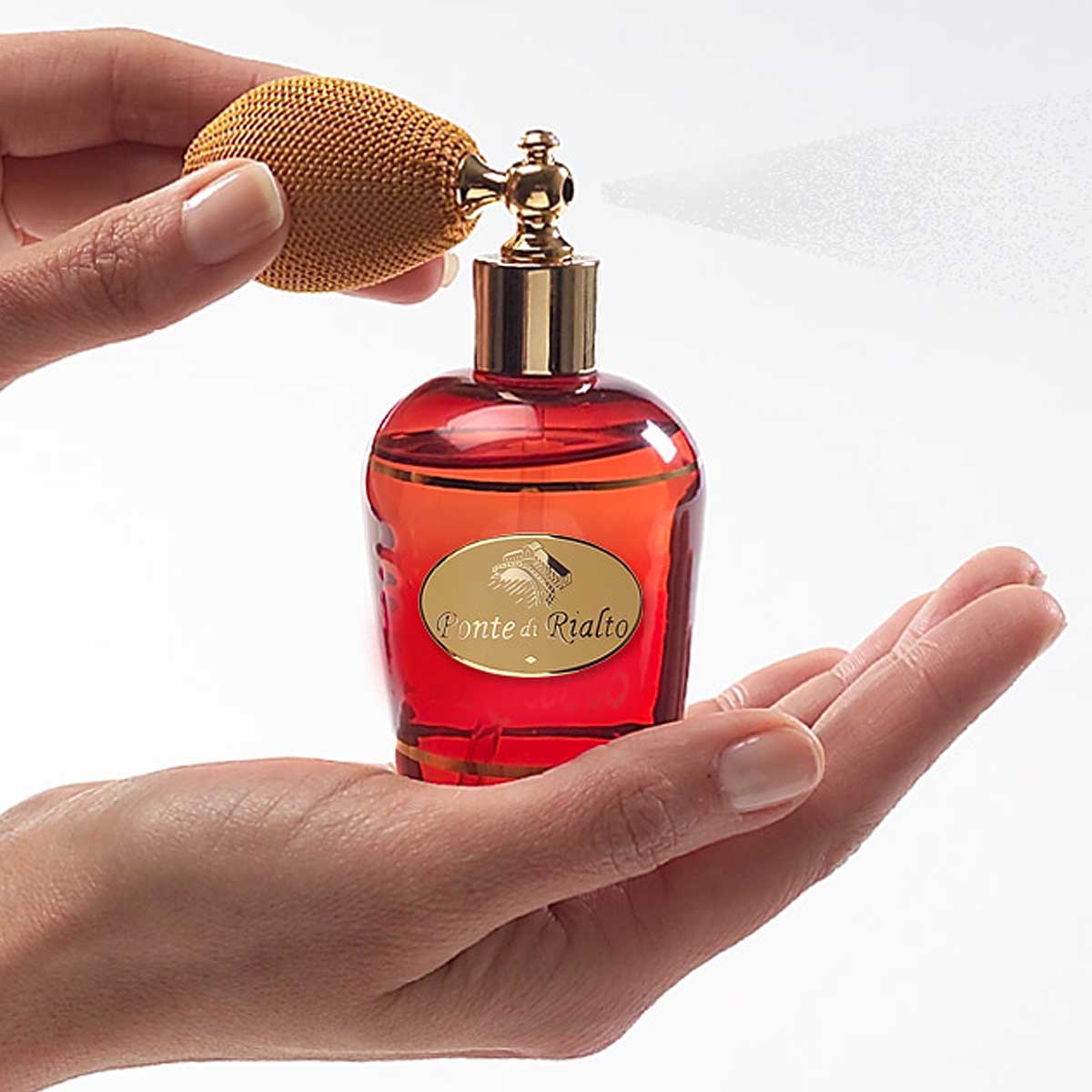 La linea di Profumi Ponte di Rialto è una creazione della Profumeria Franco di Venezia, proposta in esclusivi flaconi in vetro soffiato di Murano.