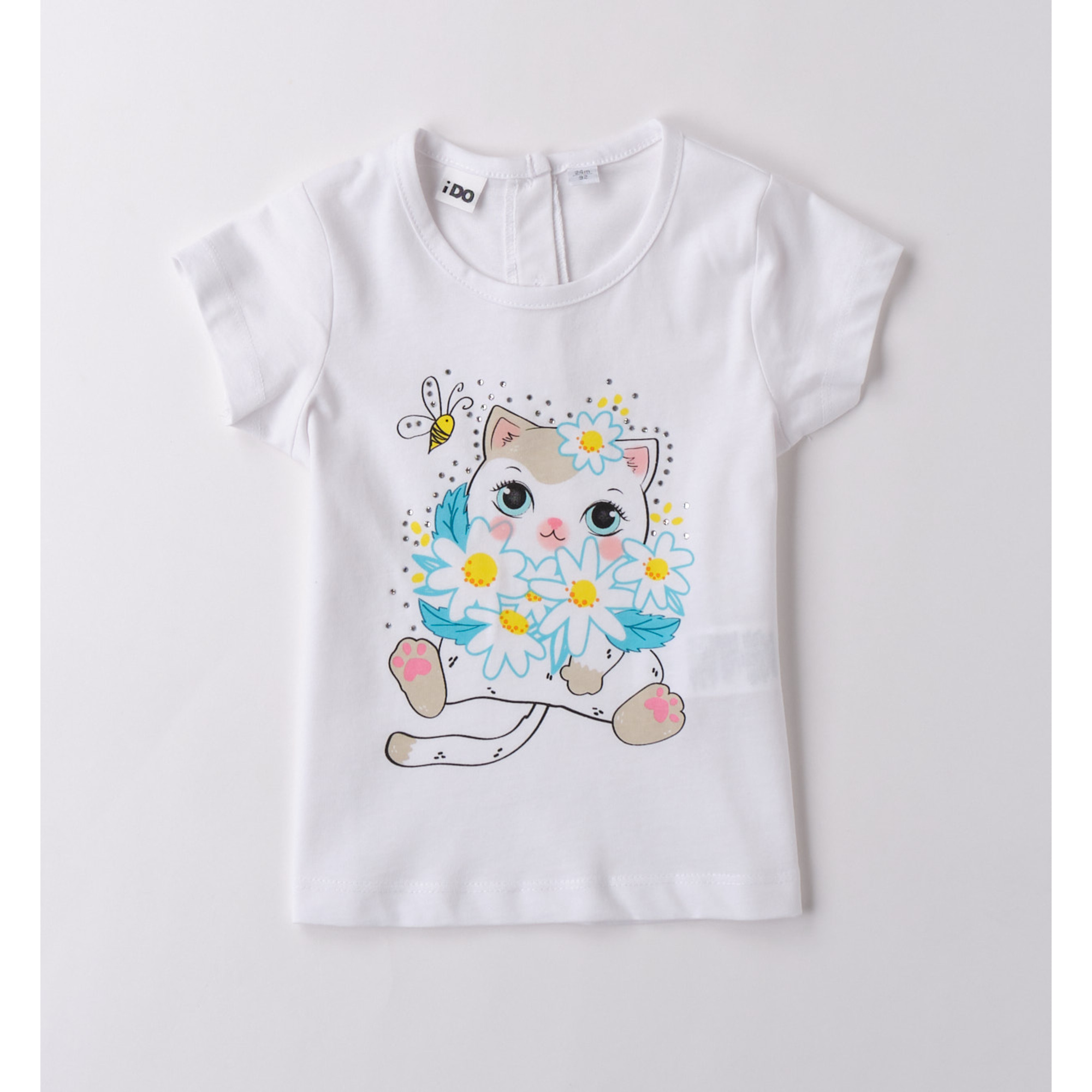 T-Shirt per bambina iDO da 9 mesi a 8 anni in 100% cotone. Il modello presenta apertura sul retro con bottoni, fantasia tinta unita e stampa frontale.