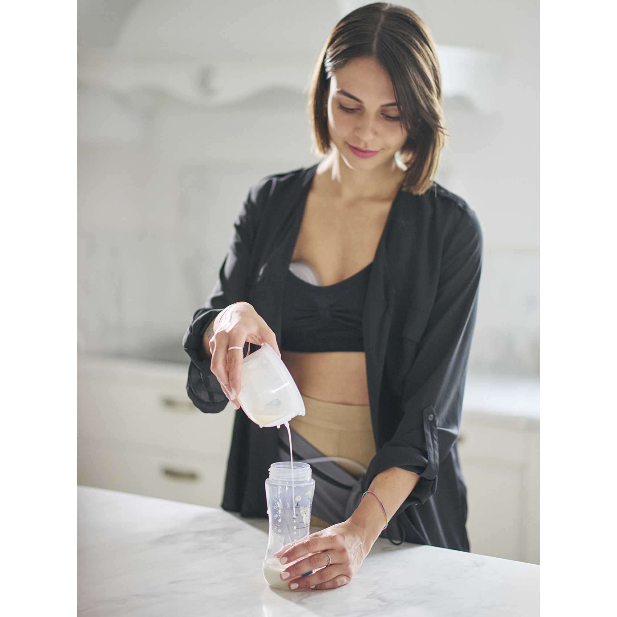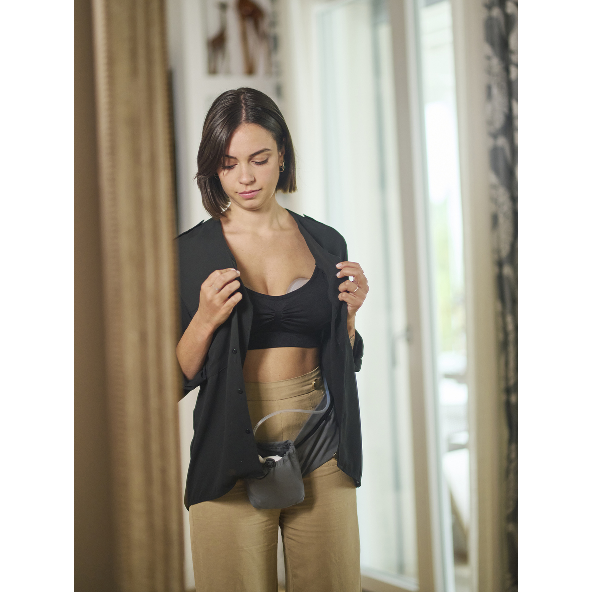 – LEGGERO: il motore staccato dalle coppe non pesa e non comprime il seno, alleggerendo anche la schiena. Il tiralatte indossabile si indossa comodamente sotto un normale reggiseno da allattamento.